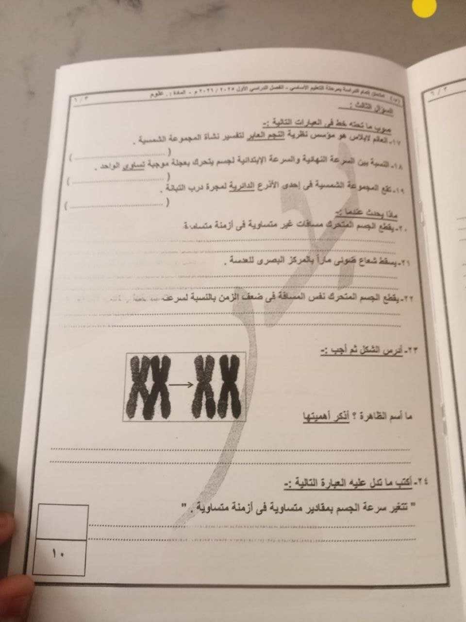 حل امتحان العلوم للصف الثالث الإعدادي ترم أول 2026 محافظة القاهرة