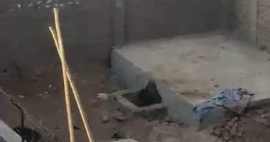 تداول عدد من رواد صفحات التواصل الاجتماعي صورا، تظهر بناء مقبرة داخل حوش منزل، ووضع أسلاك أعلى السور، بنجع الخربة بقرية الأشراف.
