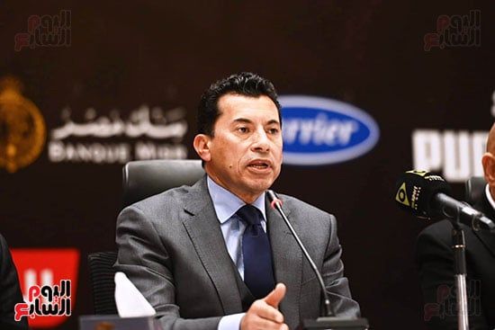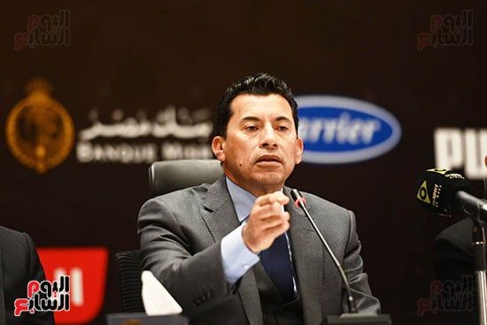 اشرف صبحى وزير الرياضة خلال المؤتمر