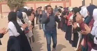 طالبات بنى برزة الإعدادية بقنا ينظمن ممرا شرفيا للمراقبين بعد انتهاء الامتحانات