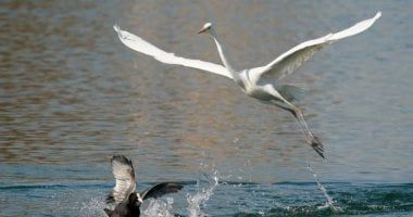 هبوط طيور البلشون فى البحيرة