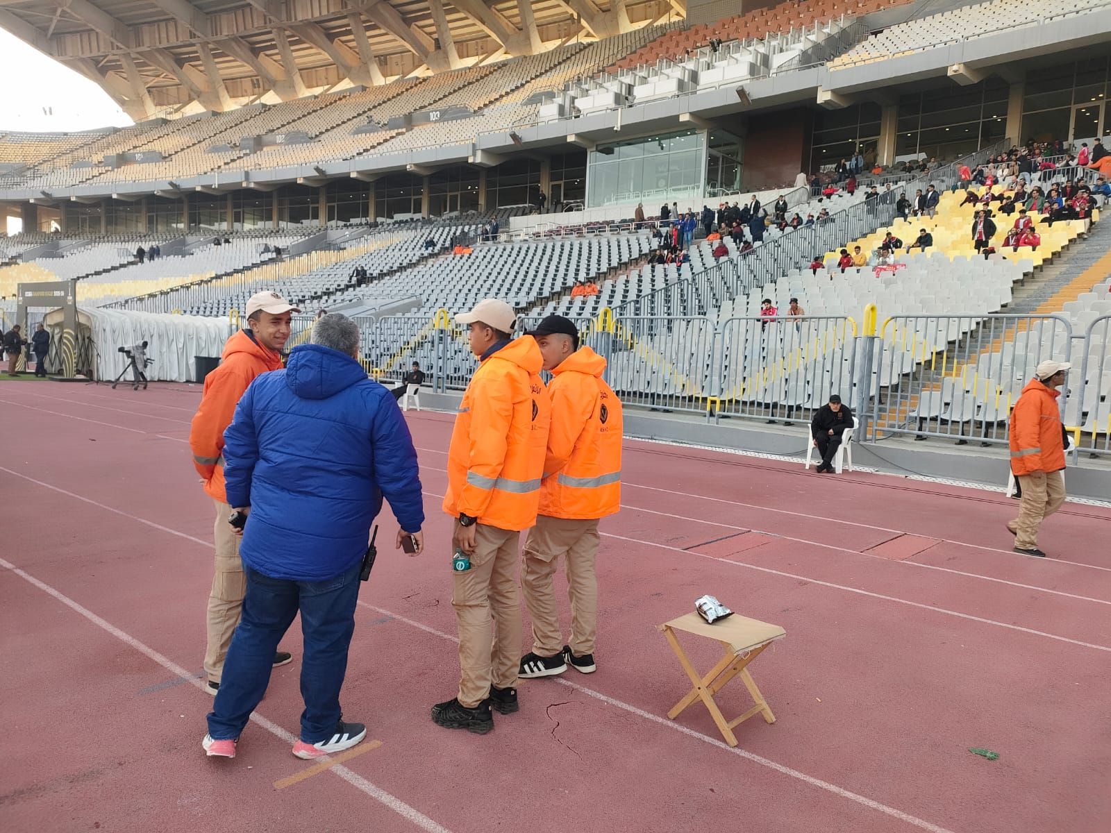 وبمحيط الاستاد انتشر رجال الأمن، وفق توجيهات اللواء طارق حسين، حيث تم توزيع فرق التأمين على الأبواب الرئيسية، وتنظيم عملية دخول الجماهير، مع التشديد على منع اصطحاب أي ممنوعات، وعلى رأسها الشماريخ والألعاب النارية، حفاظًا على سلامة المشجعين واللاعبين.