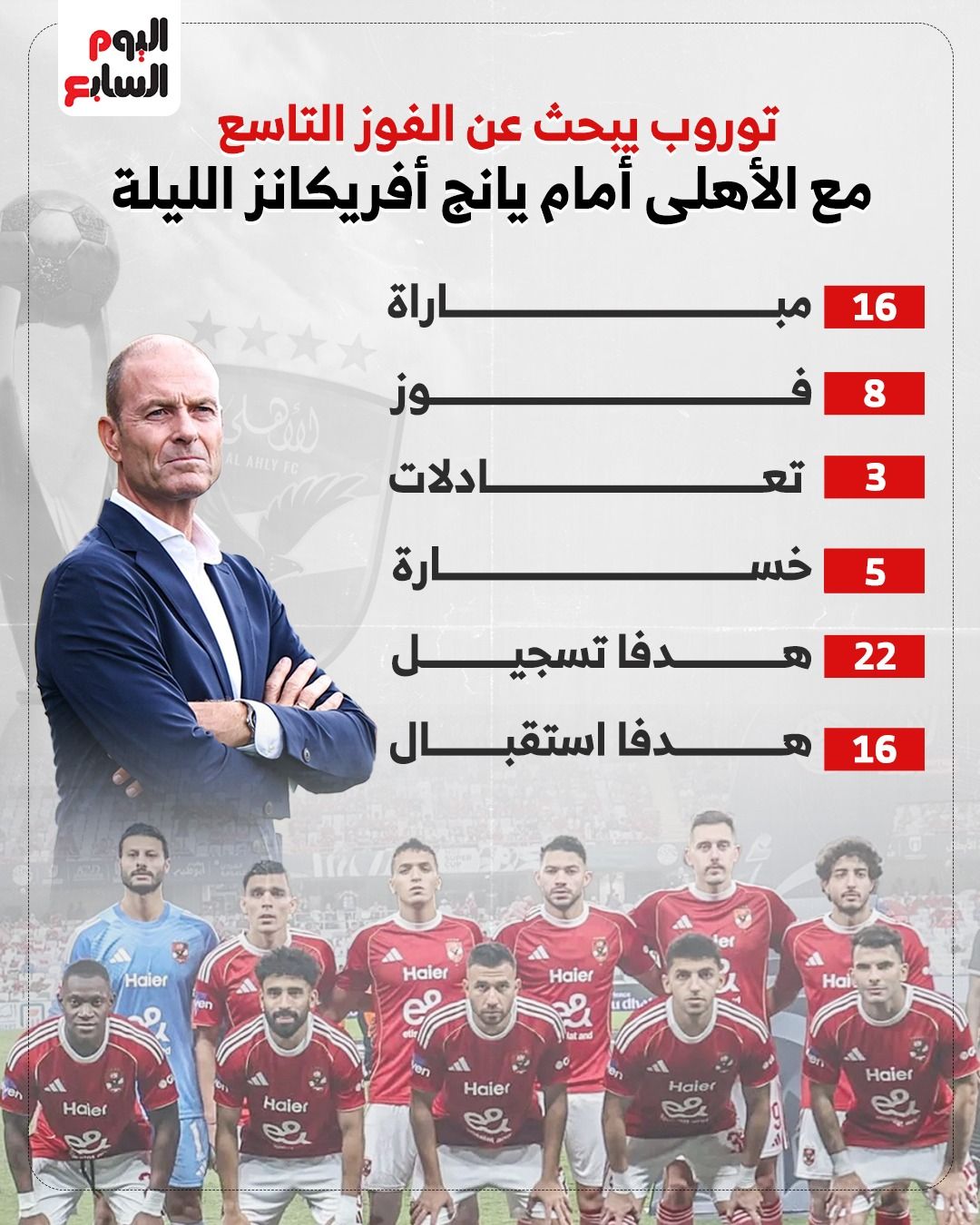 أرقام توروب مع الأهلىوتعد هذه المباراة رقم 17 للدنماركي ياس توروب المدير الفني للنادي الأهلي، منذ توليه القيادة الفنية للفريق، في أكتوبر من العام الماضي 2025. وخلال 16 مباراة سابقة، خاضها الفريق الأول لكرة القدم بالنادي الأهلي تحت قيادة توروب، نجح الأهلى فى تحقيق الفوز في 8 مباريات، وتلقى الهزيمة فى 5 لقاءات، وحضر التعادل فى 3 مباريات. وسجل لاعبو النادي الأهلي، تحت قيادة توروب، 22 هدفا، فيما تلقت شباك الأحمر 16 هدفا.