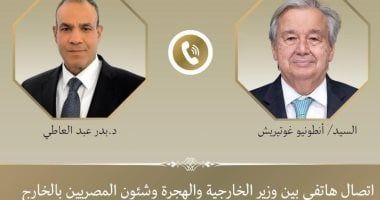 جرى اتصال هاتفى بين د. بدر عبد العاطي الخارجية والهجرة وشئون المصريين بالخارج، مع "أنطونيو جوتيريش" السكرتير العام للأمم المتحدة يوم الجمعة، حيث تناول الجانبان مستجدات الأوضاع فى غزة والسودان.