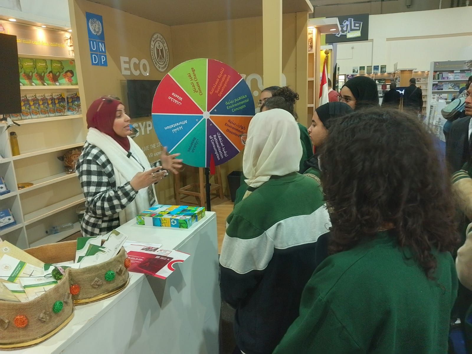 كما يتم توزيع جوائز عينية على زوار الجناح تشمل كتيبات توعوية وبروشورات تعريفية وكتيبات تلوين ومجلات “بذرة”، بما يسهم في ترسيخ الرسائل البيئية لدى الأطفال والشباب بأسلوب مبسط وجذاب.