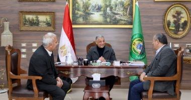 السبت، 24 يناير 2026 08:14 ماستقبل اللواء أكرم محمد جلال محافظ الإسماعيلية، بمكتبه اليوم السبت، الدكتور عادل عبد العظيم رئيس مركز البحوث الزراعية بوزارة الزراعة واستصلاح الأراضي، والوفود المرافق له، في إطار استقبال محافظة الإسماعيلية قافلة علمية خدمية إرشادية موسعة في كل مجالات الزراعة (الإنتاج النباتي، الإنتاج الحيواني – المكافحة - التحصينات واللقاحات البيطرية)، والتي ينظمها مركز البحوث الزراعية بوزارة الزراعة واستصلاح الأراضي.