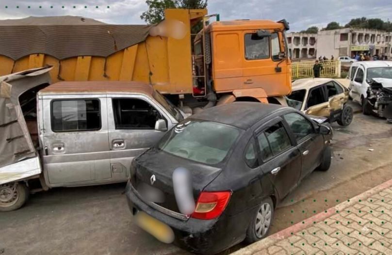 وحسب بيان للحماية المدنية تدخلت على الساعة 21:14 لأجل اصطدام تسلسلي بين 5 سيارات وشاحنة ذات مقطورة، بالمكان المسمى عربة.