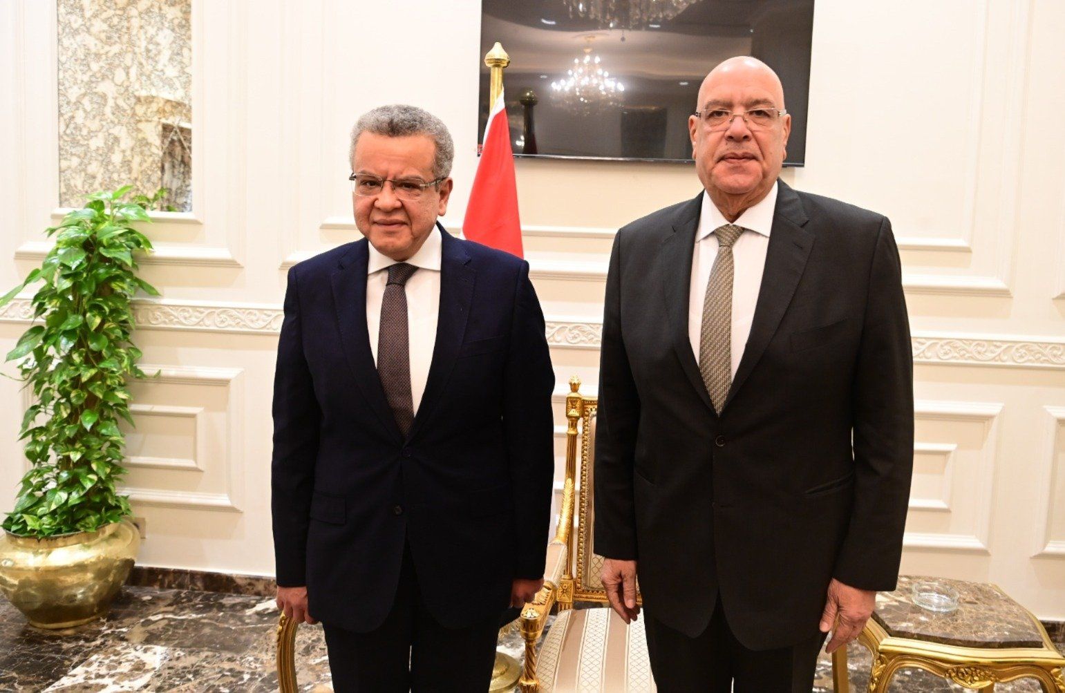 الأحد، 25 يناير 2026 02:52 ماستقبل المستشار هشام بدوي، رئيس مجلس النواب، بمقر المجلس بالعاصمة الجديدة – اليوم - المستشار محمد الفيصل يوسف، رئيس الجهاز المركزي للمحاسبات، يرافقه وفد رفيع المستوى من السادة مستشاري الجهاز، حيث تأتي الزيارة لتقديم التهنئة له بمناسبة حيازته ثقة نواب الشعب وانتخابه رئيساً لمجلس النواب، وذلك بحضور الدكتور عاصم الجزار، والدكتور محمد الوحش، وكيلي المجلس، والمستشار أحمد مناع، الأمين العام.