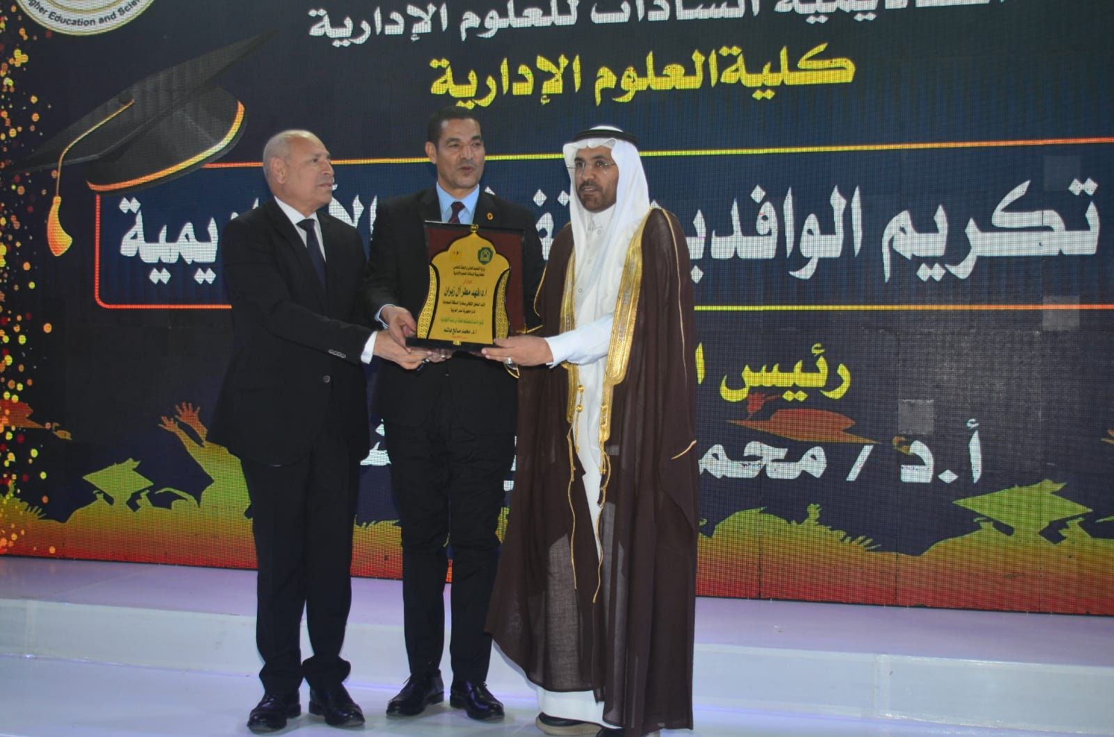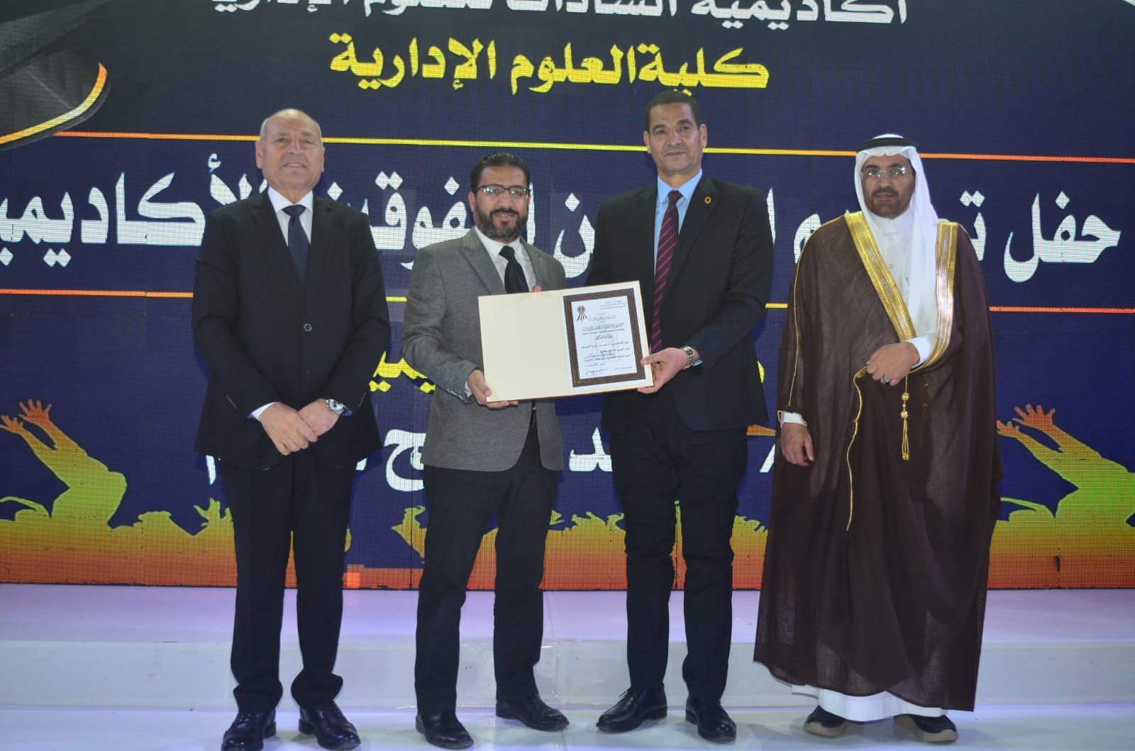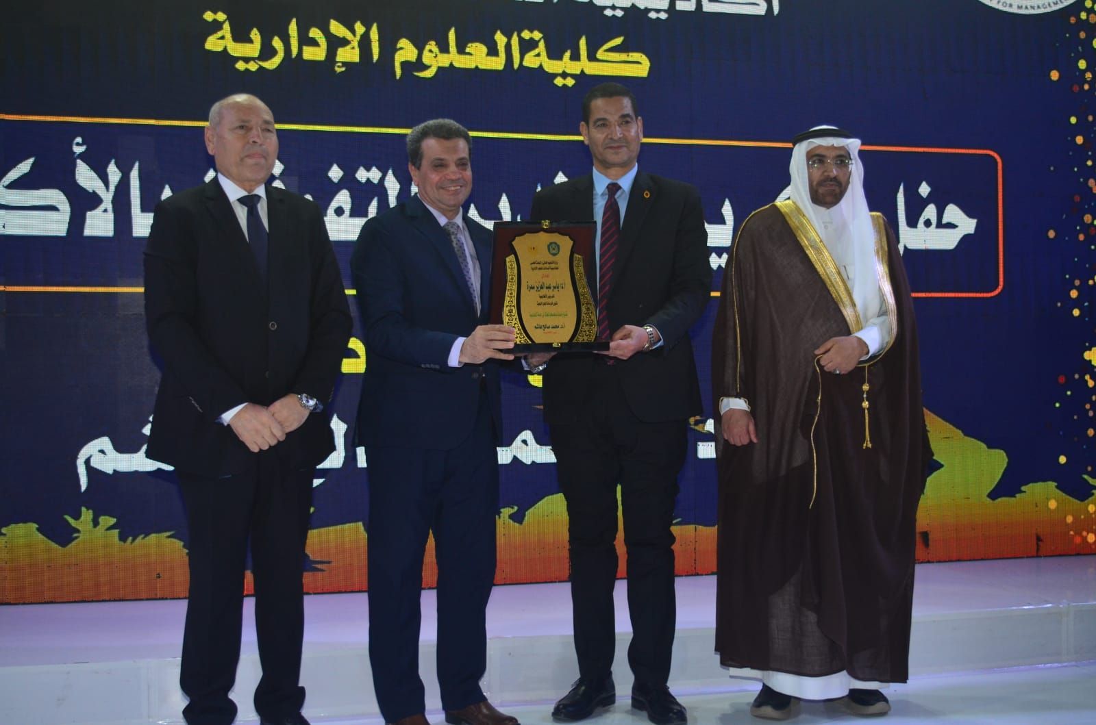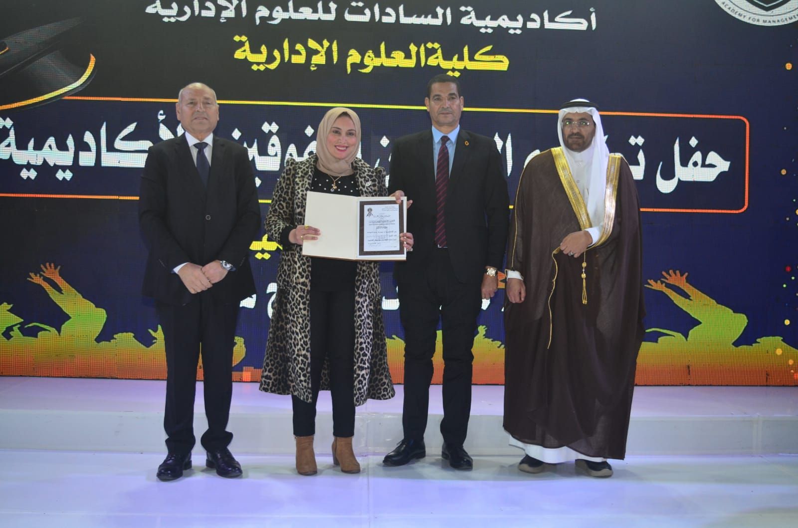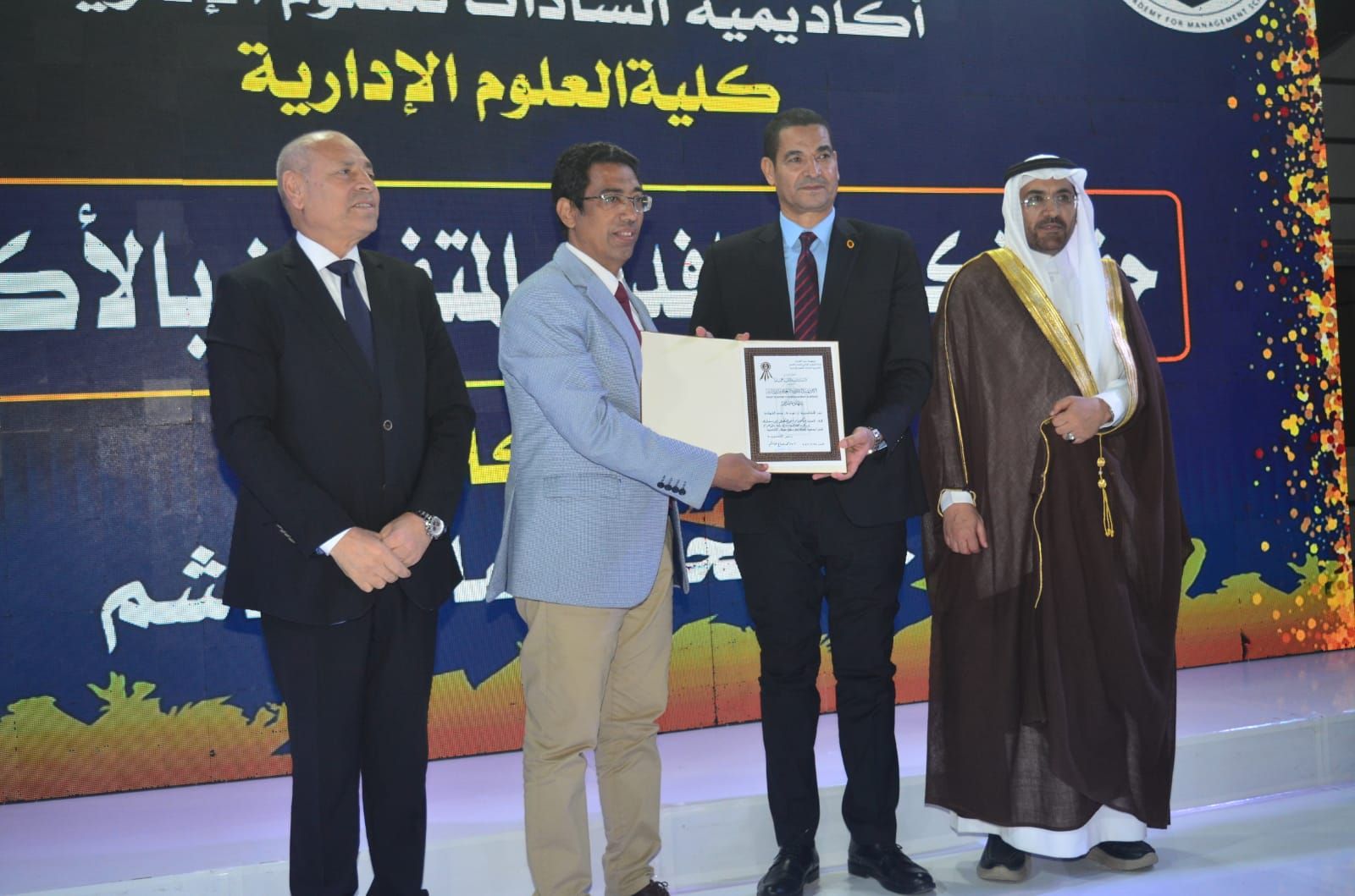 وكرّمت الأكاديمية في بداية الحفل المتفوقين من حملة الدكتوراة والماجستير بعدد من التخصصات الحيوية، من بينها إدارة الأعمال، وإدارة المستشفيات، والإدارة الرياضية، وإدارة التأمين الطبي، وإدارة الموارد البشرية، والإدارة العامة والمحلية، والاقتصاد، والمحاسبة، ونظم المعلومات، وإدارة الاستثمار والتمويل، وغيرها من التخصصات التي تلبي احتياجات سوق العمل العربي.