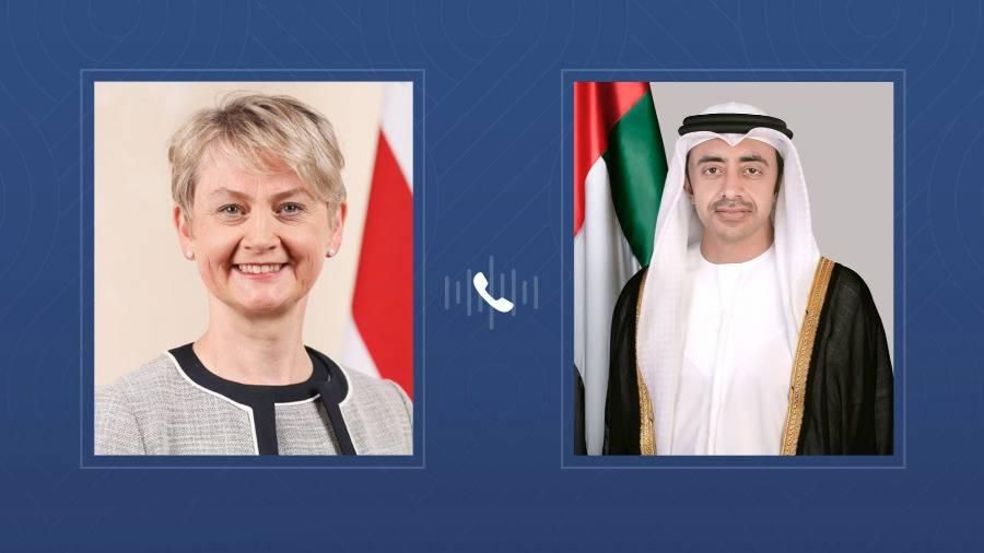 سمو الشيخ عبدالله بن زايد آل نهيان، نائب رئيس مجلس الوزراء الخارجية، خلال اتصال هاتفي مع إيفيت كوبر، وزيرة الخارجية والكومنولث والتنمية في المملكة المتحدة، العلاقات الثنائية والشراكة الاقتصادية بين البلدين وسبل تعزيز التعاون الثنائي.