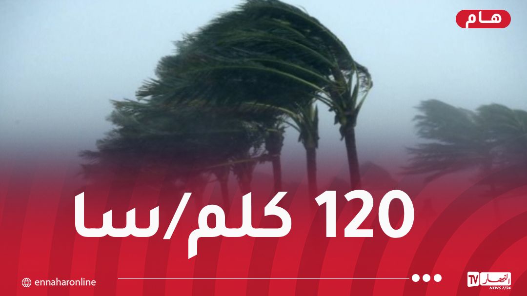 حذّرت نشرية خاصة لمصالح الأرصاد الجوية، اليوم الثلاثاء، من هبوب رياح جد قوية من غربية إلى جنوبية غربية، تتعدى الـ120 كلم/سا، على عدة ولايات من الوطن.