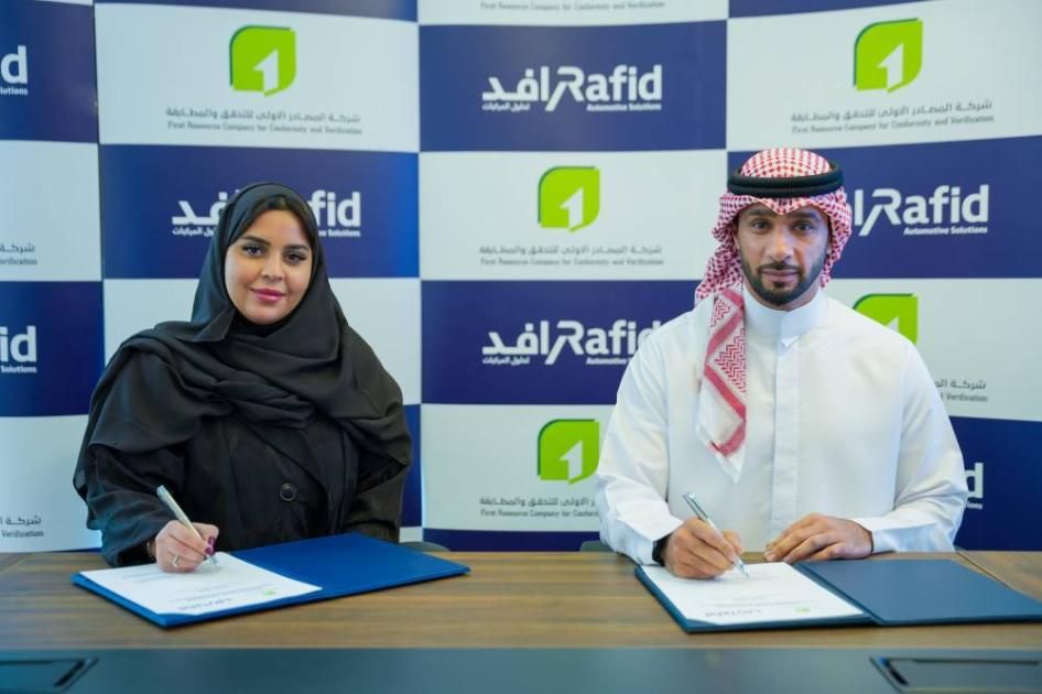 وقّع الاتفاقية أحمد جمعة المشرخ، المدير العام لرافد لحلول المركبات، ووصايف المعيوف، الرئيس التنفيذي في شركة المصادر الأولى للتحقق والمطابقة، بحضور عبدالله الغنيم، مدير العمليات في الشركة، وسلطان الكعبي، مدير فحص المركبات في رافد.