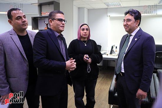 أيمن محسب ومحمود سامي ومحمد الشويخ فى جولة داخل صالة تحرير اليوم السابع