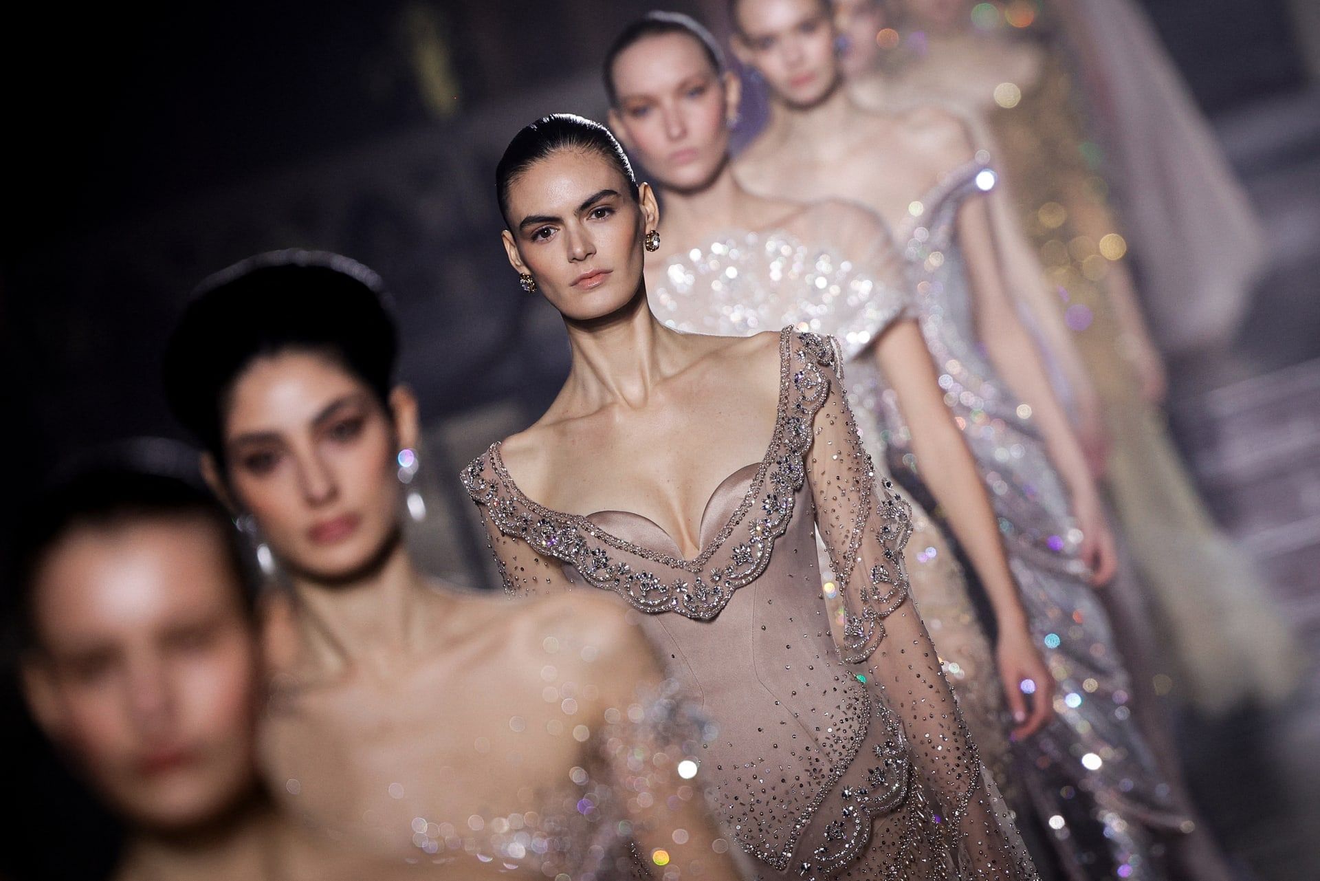 عكست المجموعة حرفية عالية ودقة في التطريزات اللامعة والبراقة، إلى جانب التوازن بين سحر كلاسيكي أنثوي ولمسات عصرية جريئة.