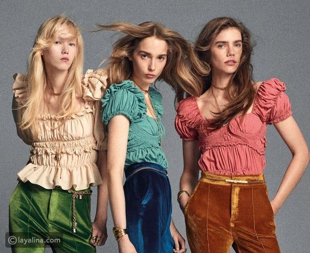 2. البلوزة، التي كانت في الأصل رمزًا للرومانسية الأرستقراطية، تظهر هنا بروح أكثر تحررًا، وتُنسَّق بأسلوب يعكس واقع الشارع والمرأة المعاصرة.