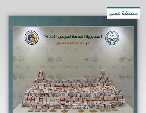أحبطت الدوريات البرية لحرس الحدود في قطاع الربوعة بمنطقة عسير تهريب 187,830 قرصا خاضعا لتنظيم التداول الطبي، و9,617 قرصًا من مادة الإمفيتامين المخدر.