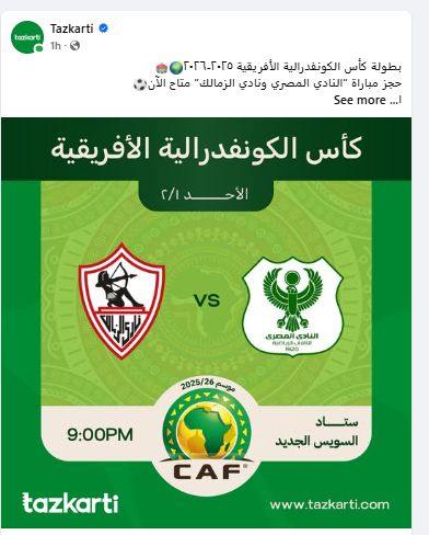 وكشف الحساب الرسمي لشركة تذكرتي، عبر موقع فيس بوك ، اليوم الأربعاء، عن فتح باب الحجز لمباراة الزمالك والمصرى، حيث كتب: "بطولة كأس الكونفدرالية الأفريقية 2025-2026????????️