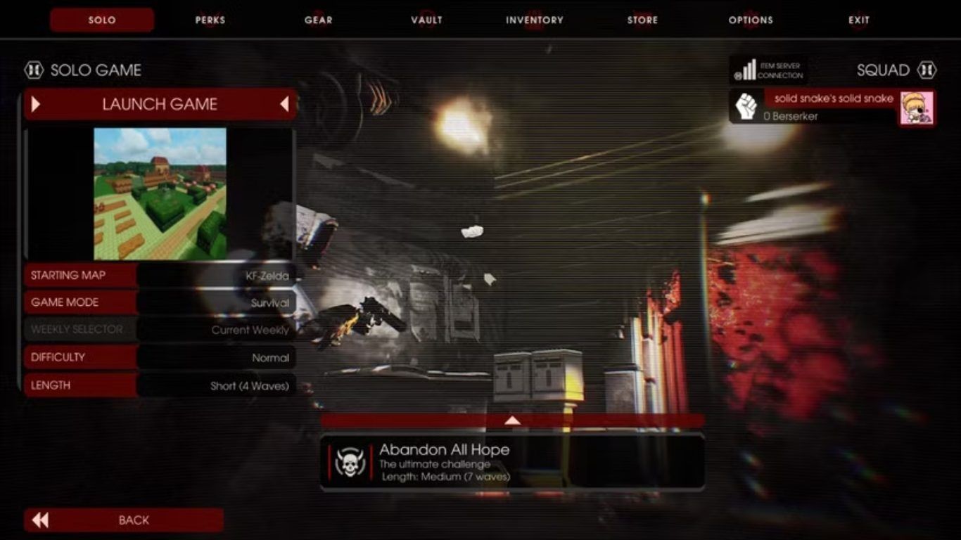 يجب التأكد من الخروج من اللعبة أو إغلاقها ثم إعادة تشغيلها. يتم فتح اللعبة من مكتبة Steam، ومن هنا يمكن العثور على بعض الـ Mods التي تم تنزيلها. في حالة تنزيل خريطة، يتم البدء باختيار Play Solo Offline، ثم اختيار الخريطة المبدئية. عند التمرير إلى أسفل القائمة، تظهر الخرائط المعدلة التي تم تنزيلها. يظهر على سبيل المثال طور KF Zelda كما هو موضح في الصورة الأولى.