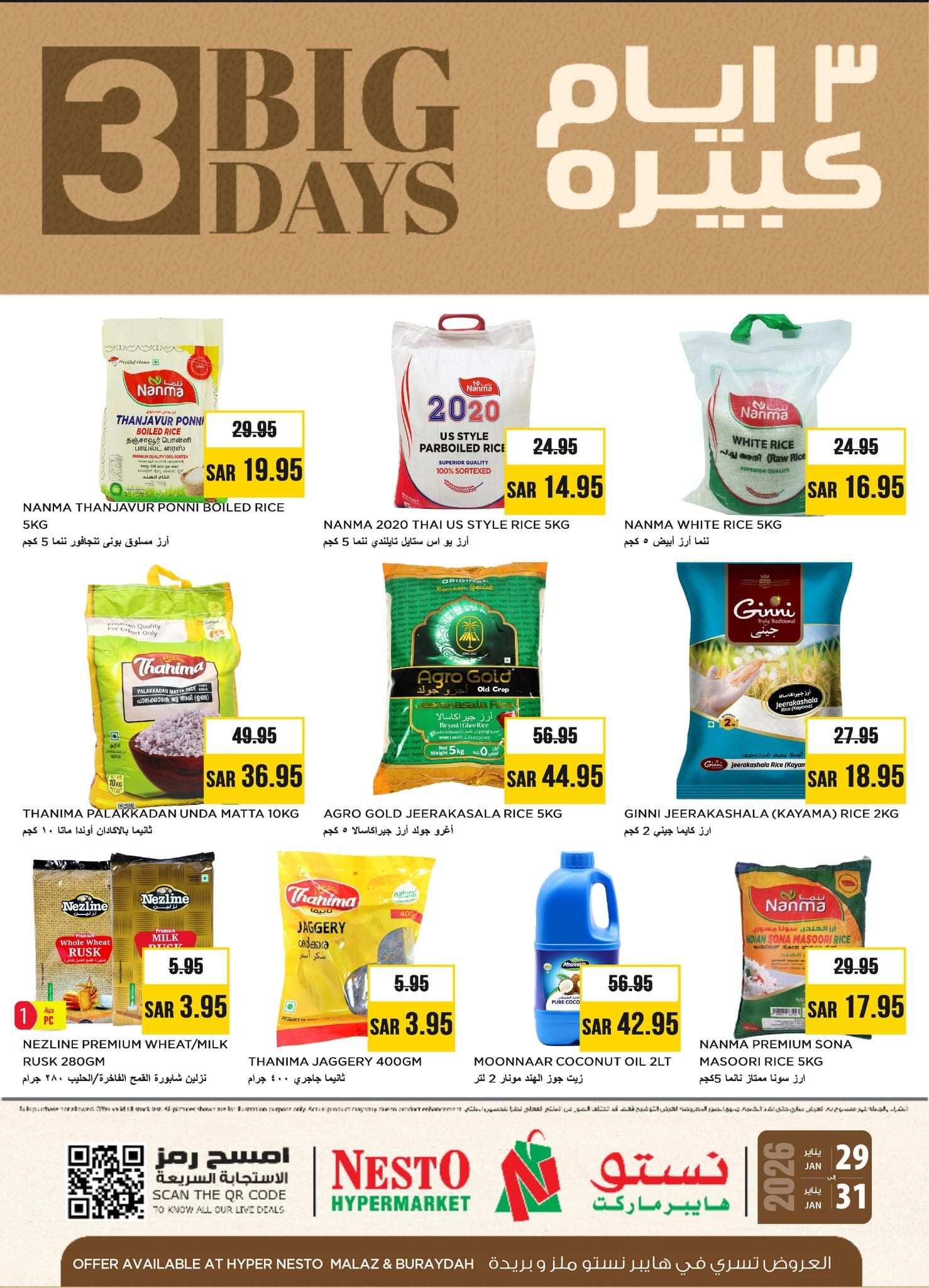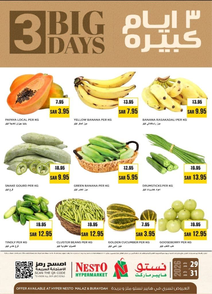 عروض نستو الملز الويكند الخميس 29-1-2026 الموافق 10 شعبان 1447هـ و تحتوي علي بابايا جيزان وموز أصفر وموز راسكادالي وقرع كايو وموز أخضر وأعواد خضروات وقرع هندي وفاصوليا عنقودية وخيار ذهبي وعنب الثعلب بالإضافة إلى أرز مسلوق بوني وأرز تايلاندي وغيرها من المنتجات باقل الاسعار المناسبة للجميع