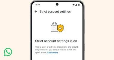 الخميس، 29 يناير 2026 07:00 صأعلنت شركة ميتا عن إطلاق ميزة أمنية جديدة في تطبيق واتساب تحت اسم "إعدادات الحساب الصارمة" ، وهي أداة مصممة لرفع مستوى حماية الحسابات من الهجمات الإلكترونية المتقدمة، عبر تفعيل مجموعة من وسائل الأمان بضغطة واحدة فقط.