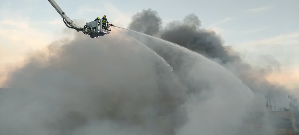استخدام درون لإطفاء حريق منشأة ناصر