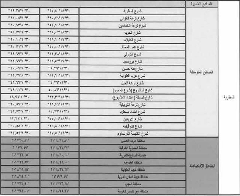 بعد تقسيم مناطق القاهرة وفقا لتعديل قانون الإيجار القديم، ينشر تقسيم مناطق المطرية، والتى جاءت بين متميزة ومتوسطة واقتصادية، وجاءت كالتالى.