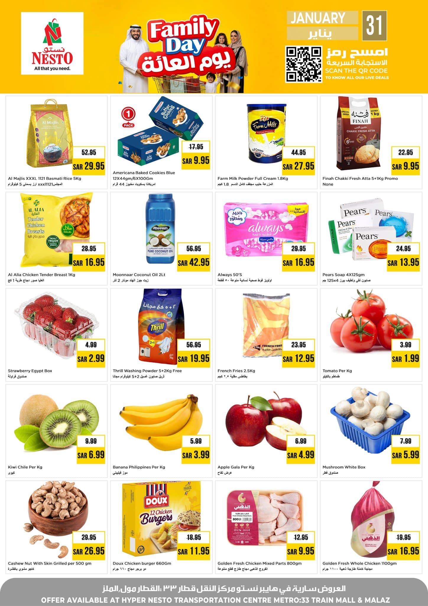 عروض نستو الملز الجمعة 11-8-1447هـ الموافق 30 يناير 2026 و تحتوي علي أرز بسمتي وبسكويت أمريكانا وحليب بودرة ودقيق فوم ودجاج تندر وزيت جوز هند وفوط أولويز وصابون بيرز وفراولة وطحين ومنظف غسيل وبطاطس مثلجة وطماطم وكيوي وموز وتفاح ومشروم وكاجو وبرجر دجاج وقطع دجاج طازجة ودجاج كامل وقلاية تيفال