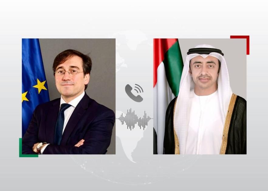 تلقى سمو الشيخ عبدالله بن زايد آل نهيان، نائب رئيس مجلس الوزراء وزير الخارجية، اتصالاً هاتفياً من خوسيه مانويل ألبارس، وزير خارجية مملكة إسبانيا، جرى خلاله بحث العلاقات الثنائية بين البلدين وسبل تعزيزها بما يخدم مصالحهما المتبادلة. كما استعرض الجانبان مختلف جوانب التعاون والعمل المشترك، لاسيما في المجالات التنموية، وفرص تعزيزها بما يدعم جهود البلدين لتحقيق الازدهار الاقتصادي المستدام.