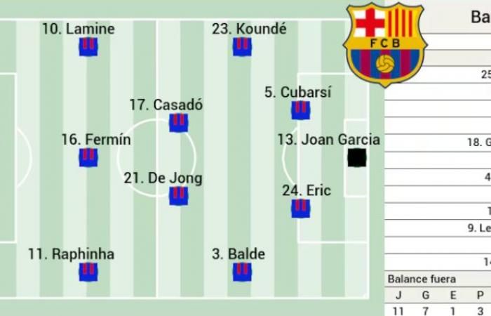 belbalady وتضرب الحيرة فليك بخصوص الاسم الذي سيرافق الثنائي فرينكي دي يونج وفيرمين لوبيز في خط الوسط، بين الثلاثي مارك كاسادو، داني أولمو، ومارك بيرنال، على أن يظهر فيران توريس في قيادة خط الهجوم.
