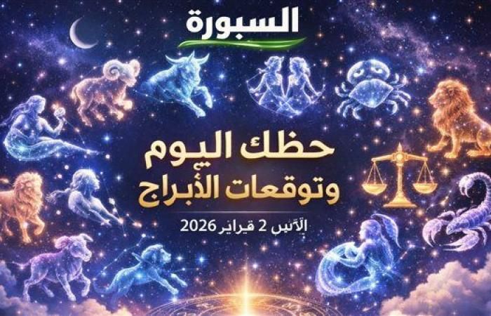 حظك اليوم وتوقعات الأبراج الإثنين 2 فبراير 2026 تشير إلى أن الانتباه للتفاصيل الصغيرة في حياتك المهنية والعاطفية سيمنحك نتائج إيجابية، اغتنم فرص التواصل مع الآخرين وتحسين وضعك المالي، واستثمر وقتك في نشاطات تعزز صحتك النفسية والجسدية.