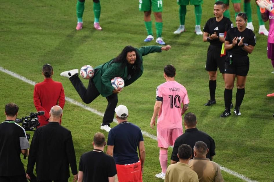 ووقع ميسي، الذي شارك 70 دقيقة في المباراة، كرة وأهداها لهيغيتا واستعرض الحارس مهاراته في التصدي للكرات بقدميه أمام بطل العالم 2022، ولاسيما حركة «العقرب» التي اشتهر بها.