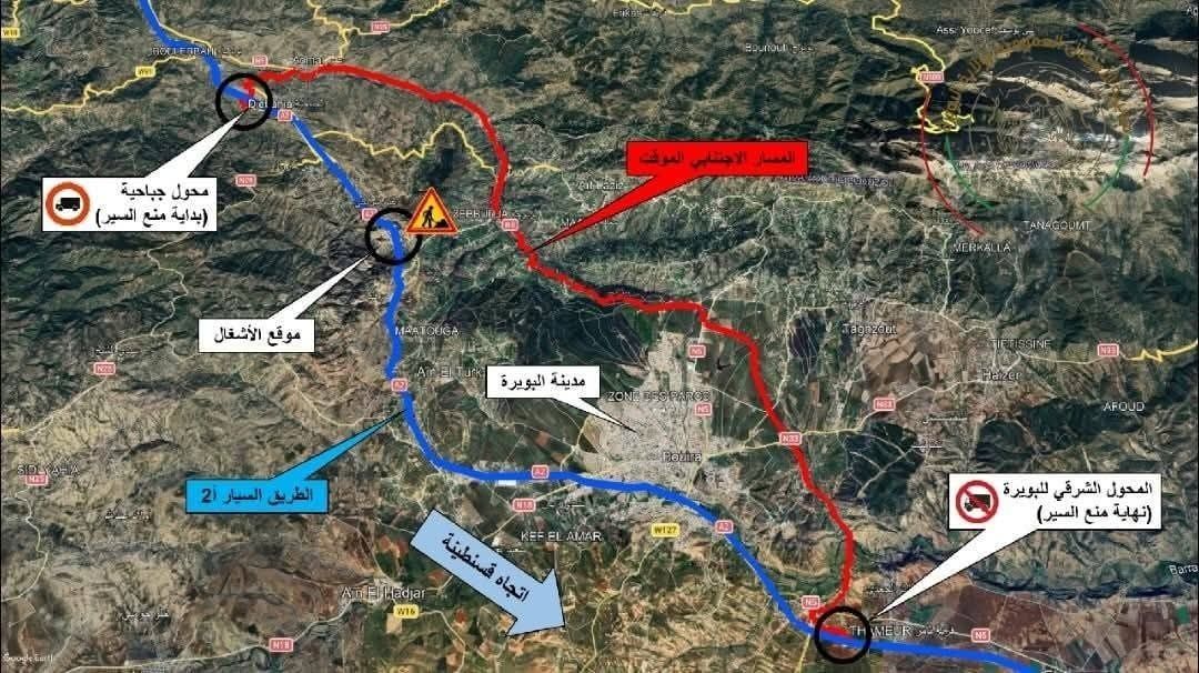ودعت الجزائرية للطرق السيّارة جميع مستعملي الطريق السيار A2 إلى توخي الحيطة والحذر واحترام إشارات المرور. ضمانًا لانسيابية الحركة المرورية وسلامة الجميع إلى غاية انتهاء الأشغال.