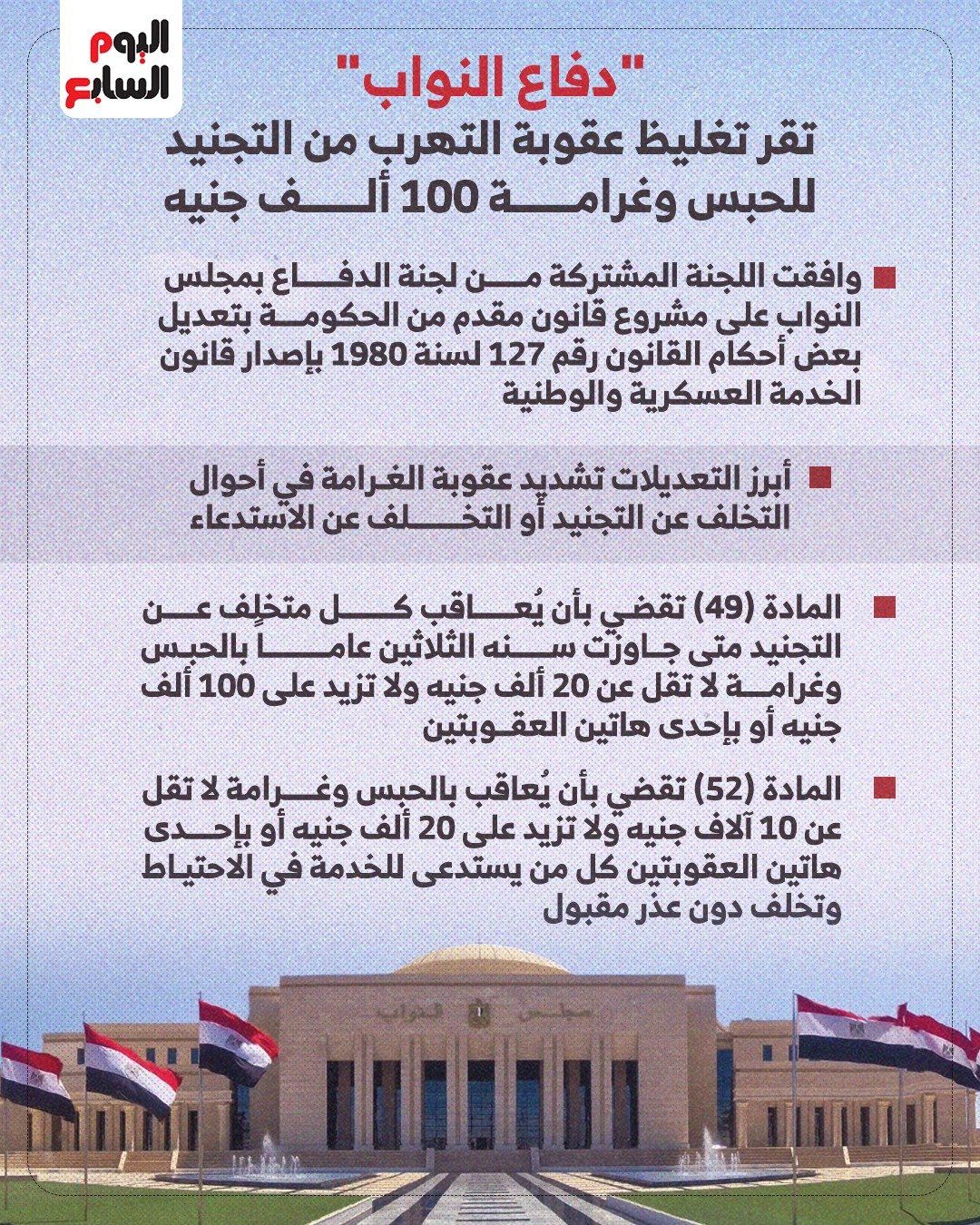 أبرز التعديلات تشديد عقوبة الغرامة الواردة بهما في أحوال التخلف عن التجنيد أو التخلف عن الاستدعاء.