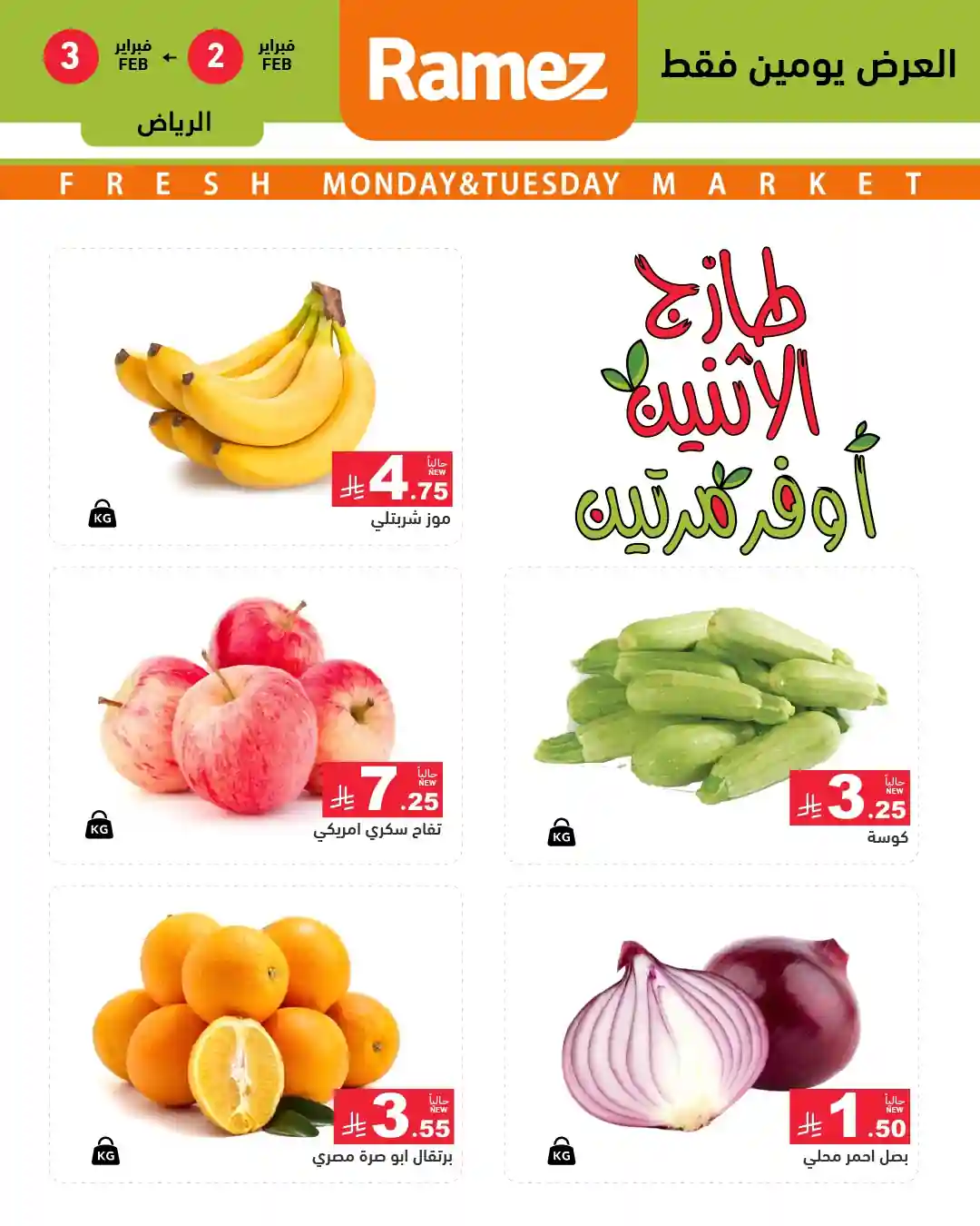 عروض نت تقدم لكم احدث عروض رامز السعودية اليوم الجديدة فى صفحة واحدة – عروض رامز السعودية 2026 – و ذلك من 2 و 3 فبراير 2026 طازج الاثنين او حتى نفاذ الكمية من رامز السعودية بجميع الفروع.