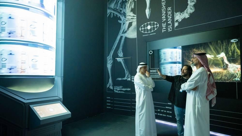 وتجول سمو ولي عهد عجمان في أقسام المختبر، حيث تعرف إلى التجربة السمعية والبصرية المتكاملة التي يقدمها للزوار، والتي تسلط الضوء على كائنات منقرضة، مع تسليط الضوء على التحديات البيئية على المستويين الإقليمي والعالمي.