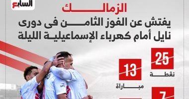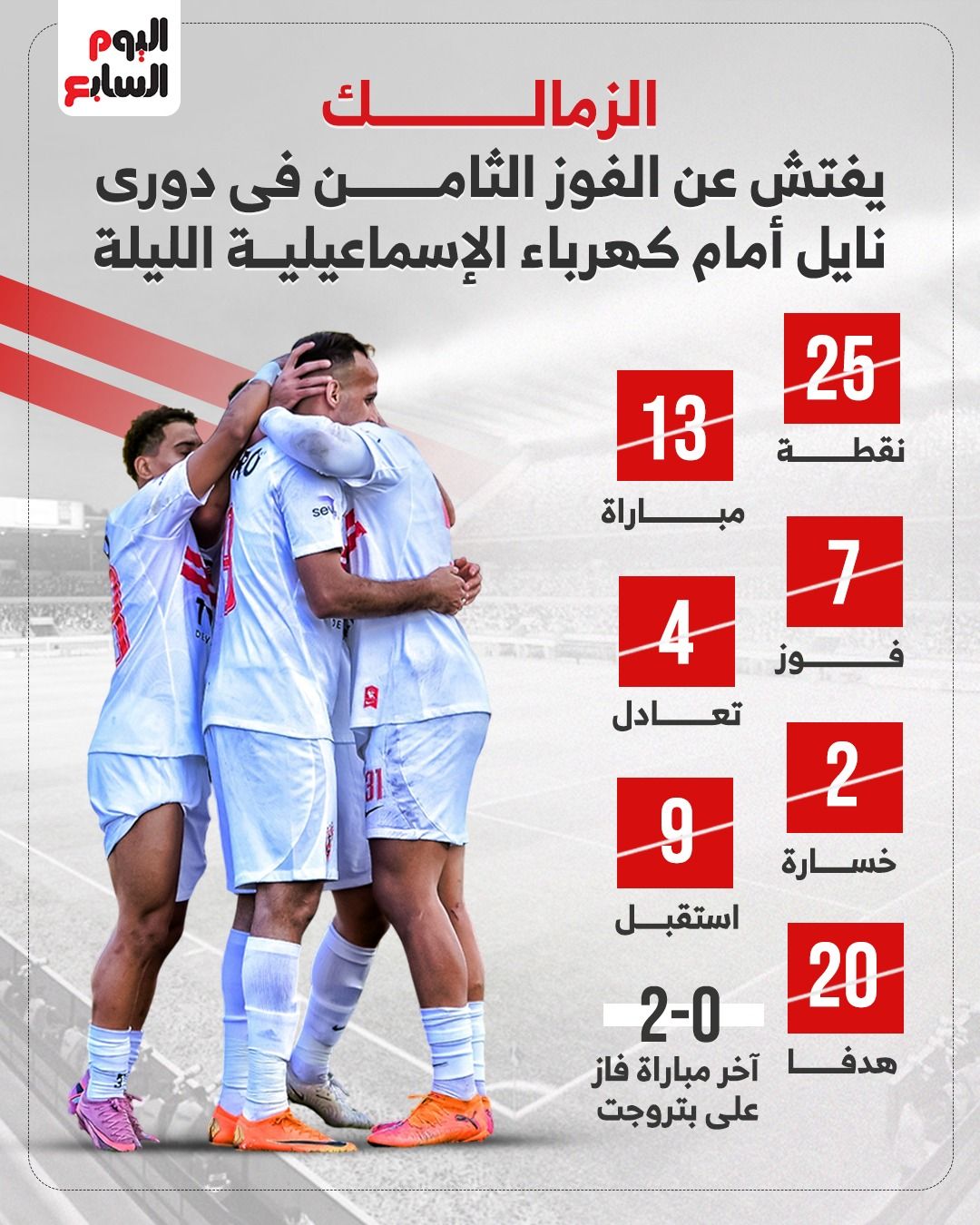 الزمالك يبحث عن الفوز الثامن فى الدورى أمام كهرباء الاسماعيلية.. إنفوجراف