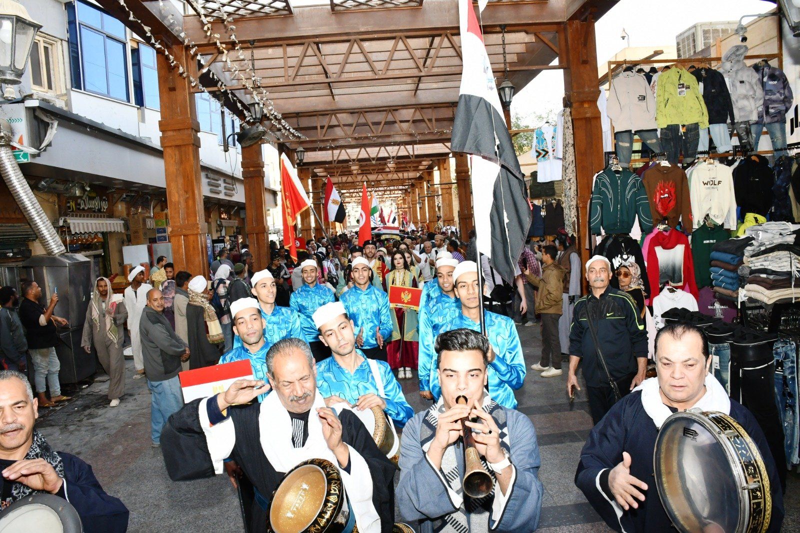 جاءت الفعاليات تحت رعاية الدكتور أحمد فؤاد هنو وزير الثقافة، واللواء دكتور إسماعيل كمال محافظ أسوان، فى تأكيد واضح على دعم الدولة للأنشطة الثقافية الكبرى باعتبارها أحد أدوات القوة الناعمة المصرية، حيث قدمت 14 فرقة عروضها فى مسار استعراضى جذب الأنظار داخل السوق السياحى، الذى يُعد من أهم المقاصد التراثية بالمدينة وبدت الشوارع وكأنها معرض فنى متحرك، تتقدم فيه كل فرقة بملابسها التراثية وألحانها المميزة، بينما تتعالى التصفيقات مع كل فقرة استعراضية.