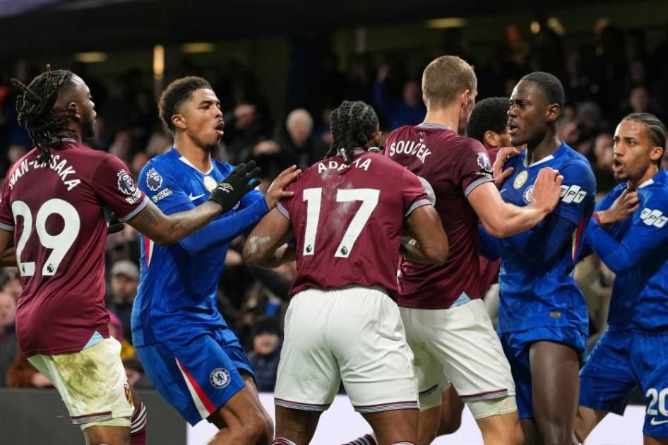 وانطلقت شرارة الشجار من قيام أداما تراوري لاعب وست هام بدفع ظهير تشيلسي الإسباني مارك كوكوريلا وطرحه أرضاً ثم دفع البرازيلي جواو بيدرو، نجم تشيلسي، ترواري قبل دخول بقية اللاعبين الحلقة التي وصفت بـ«حلبة مصارعة»، وبعد مراجعة الفار قرر الحكم طرد ظهير ويست هام توديبو (26 عاماً) بعد إمساكه برقبة بيدرو وسيغيب توديبو 3 مباريات أمام بيرنلي ومانشستر يونايتد وبيرتون.