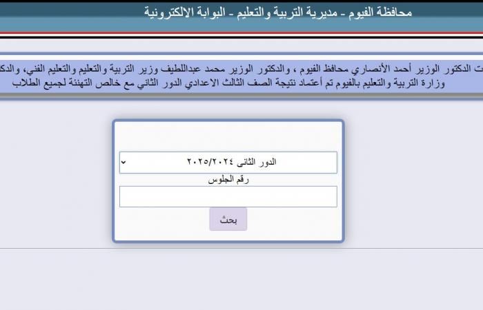 يمكن للطلاب وأولياء الأمور الاستعلام عن نتيجة الصف الثالث الإعدادي محافظة الفيوم 2026 مباشرة من خلال الرابط الرسمي التالي: http://fayoum.gov.eg/default.aspx