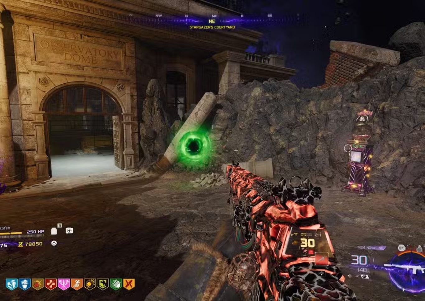 بعد إضاءة المصابيح الثلاثة بالكامل يظهر Portal أخضر جديد عند مدخل Observatory Dome بالقرب من عمود مدمر في الجهة الشمالية الشرقية ويعد هذا الموقع نقطة ثابتة لا تتغير وهو المدخل الرسمي لبدء Trial الخاصة بـ Gong Relic داخل خريطة Astra Malorum.