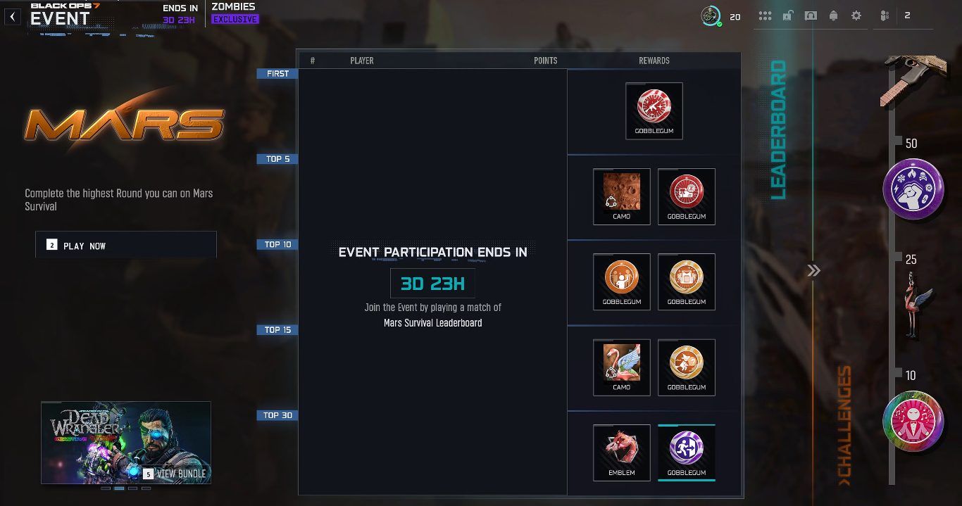 مكافآت التحديات في حدث Mars Leaderboard في لعبة Black Ops 7 Zombies