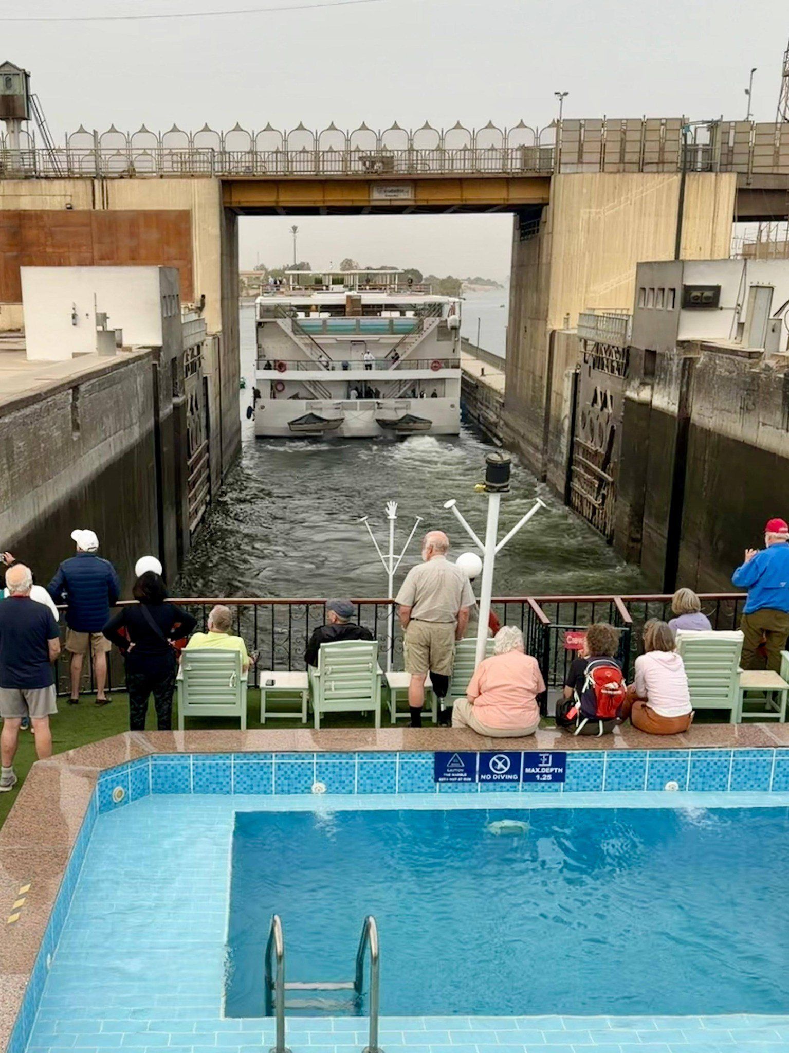 لحظات المتعة للسائحين مع عبور المراكب النيلية لمنطقة هويس إسنا