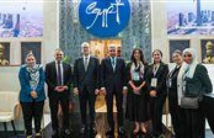 شريف فتحي يقوم بجولة داخل الجناح ويلتقي مجموعة من العارضين المصريين المشاركين