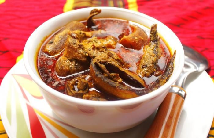 تُضفي ثمار نخيل الزيت نكهةً غنية وقوامًا كثيفًا لهذا الحساء القادم من دلتا النيجر، الذي يُحضَّر أيضًا باستخدام سمك السلور الطازج، ولحم البقر، والمأكولات البحرية المجففة.