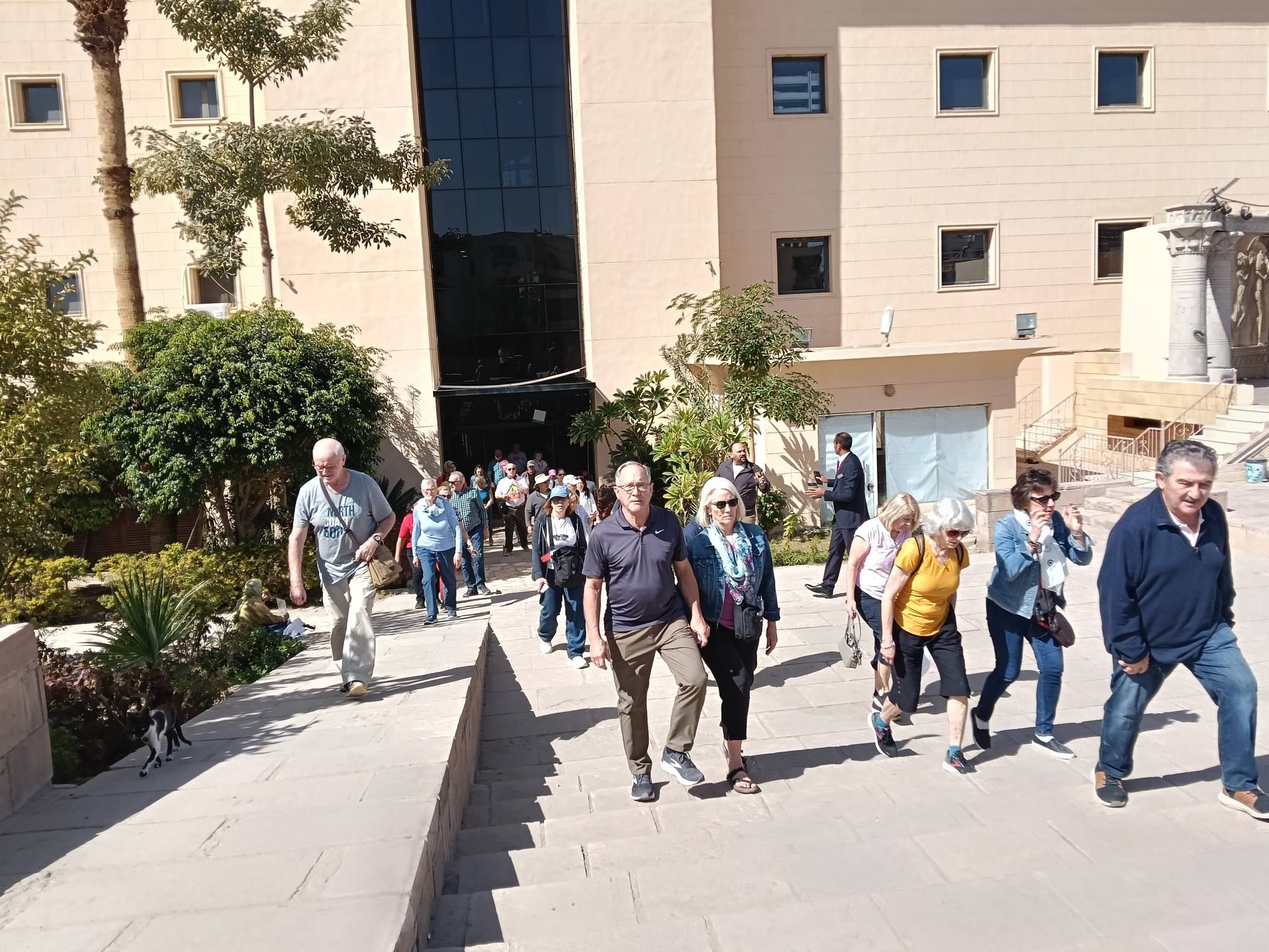 استمتاع السياح على طريق الكباش بمكتبة مصر العامة في الأقصر