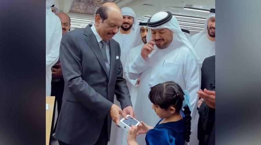أهدى رجل الأعمال الهندي يوسف علي موسيليام طفلة جهاز آيفون 17، وذلك خلال افتتاح متجر اللولو الجديد في مدينة كلباء بإمارة الشارقة.