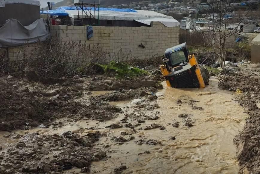 وتعمل السلطات الأحد على فتح طرقات داخل مخيمات للنازحين في منطقة خربة الجوز في ريف إدلب التي غمرتها المياه.