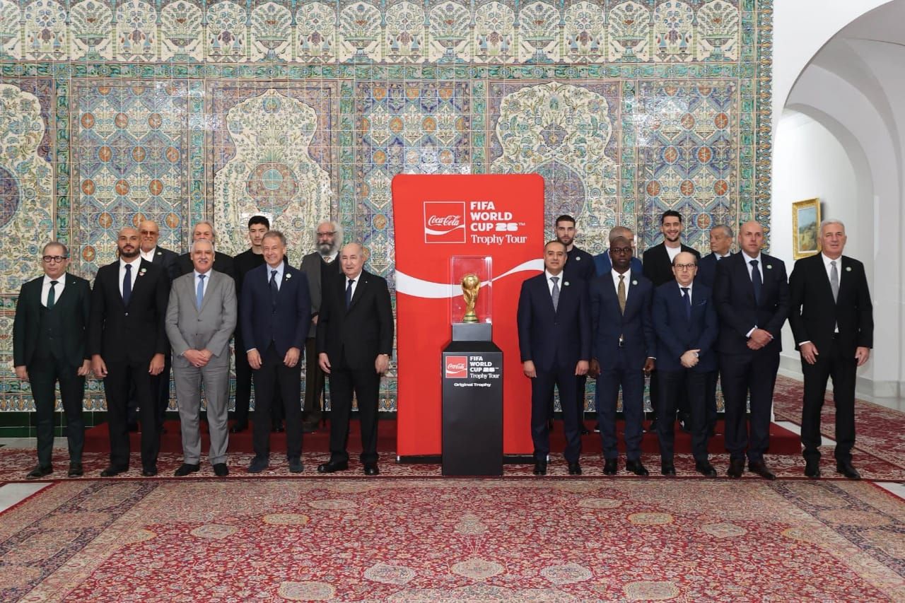 استقبل رئيس الجمهورية، عبد المجيد تبون، اليوم الأحد، وفدًا عن الاتحاد الدولي لكرة القدم (فيفا)، الذي يقوم بزيارة إلى الجزائر حاملاً مجسّم كأس العالم.