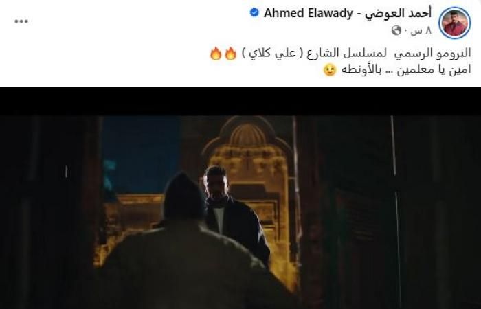 وعلق "العوضي" على البرومو، قائلًا: "البرومو الرسمي لمسلسل الشارع (علي كلاي)".