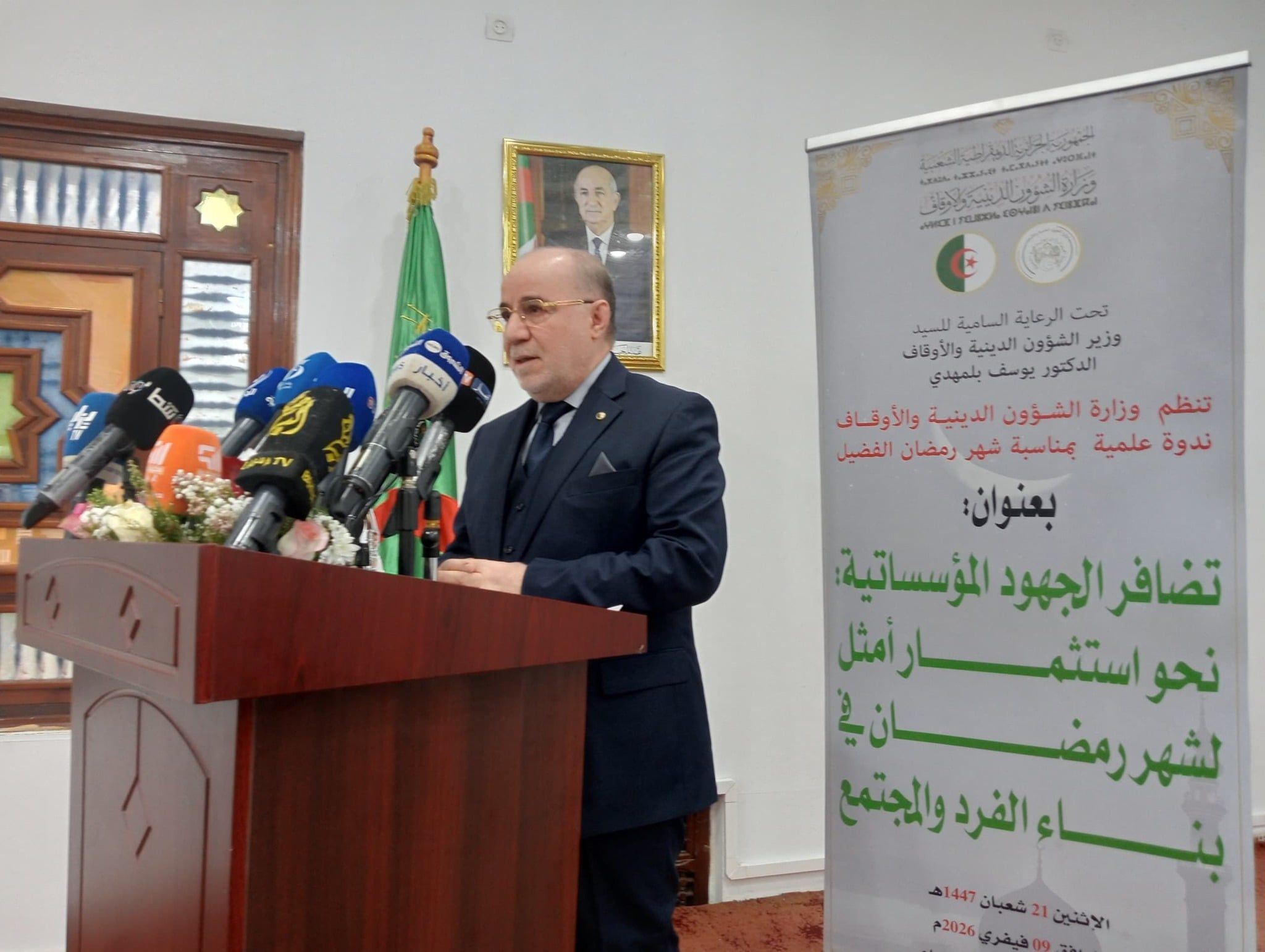 وفي كلمته الافتتاحية، أكد وزير الشؤون الدينية والأوقاف أن تنظيم هذه الندوة الوطنية. يندرج في إطار المقاربة الحكومية التشاركية للتحضير لشهر رمضان المبارك. تنفيذًا لتوجيهات السيد الوزير الأول، وبمشاركة مختلف القطاعات الوزارية والهيئات الوطنية. والمجتمع المدني عبر مختلف ولايات الوطن.
